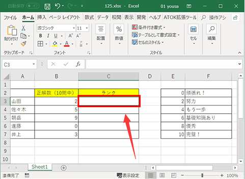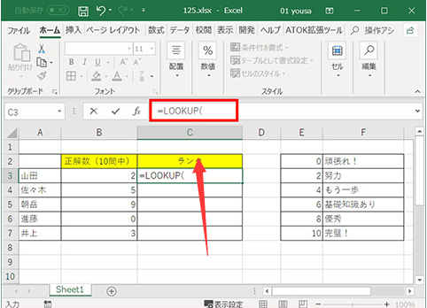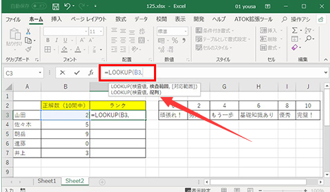 答えを表示させたいA2番地に、直接この数式を手入力するか、次の章のようにダイアログボックスを使って数式を入力します。