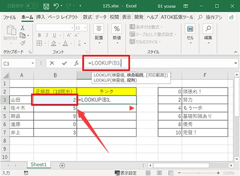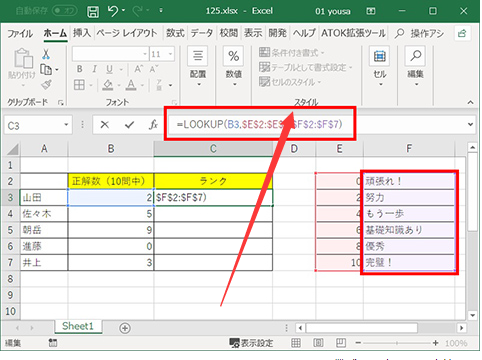 [参照]欄には、何行目なのかを調べたいセルを指定します。