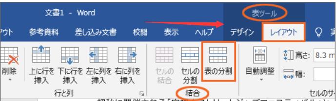 今回は、表全体ではなく、表の1行目を選択します。
