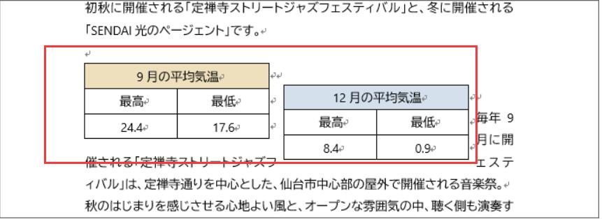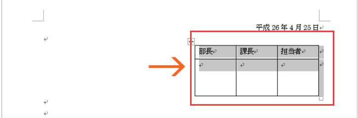 まずは右揃えにしたい表の、表全体を選択します。