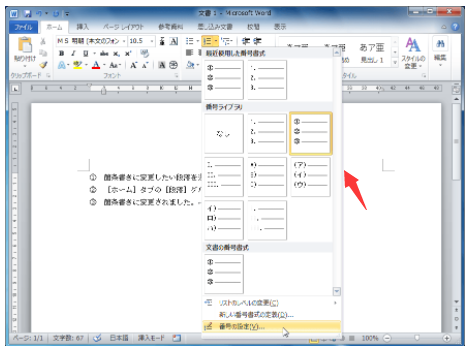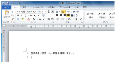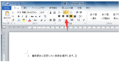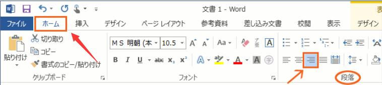 先程と同じように、[ホーム]タブ、[段落]グループの、