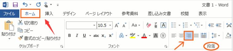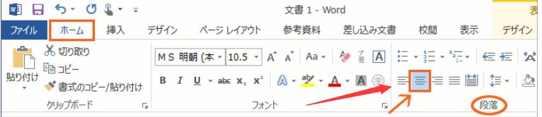先程と同じように、[ホーム]タブ、[段落]グループの、