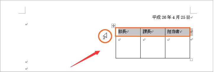 でも、表全体を選択している時には、表全体の位置を変えることができるので、下の図のように表全体を選択し、